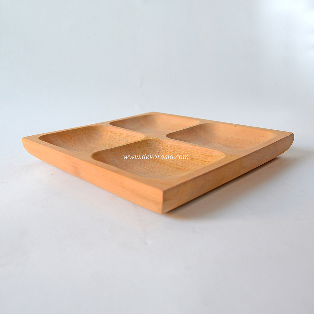 Natural Wooden Square Tray with 4 Compartment Eco-friendly