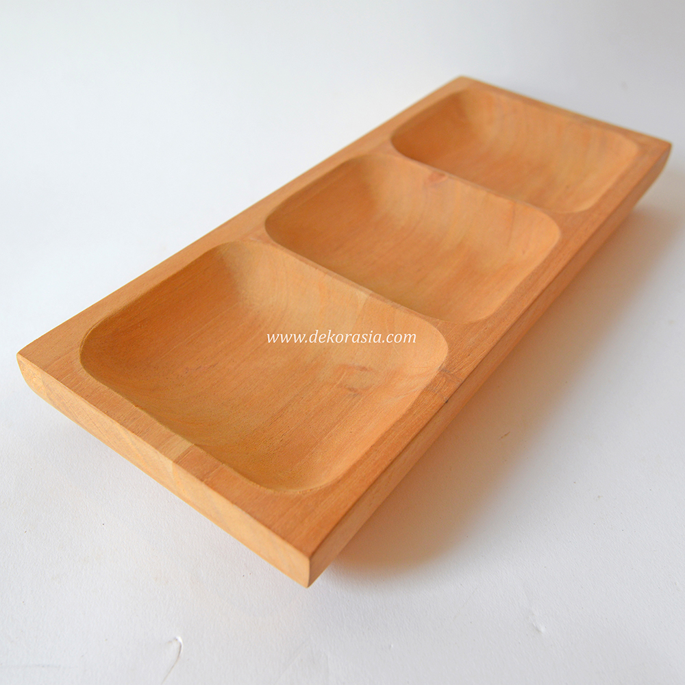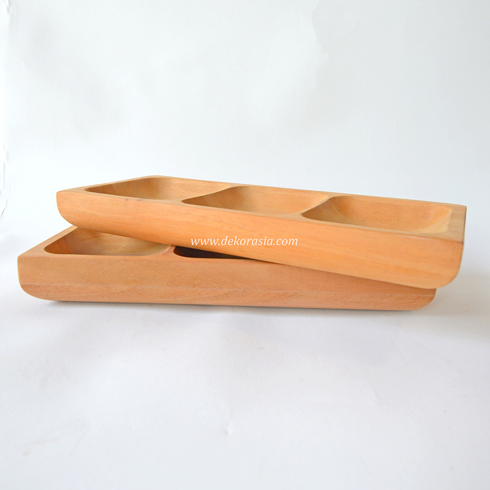 Rectangular Tray with 3 Compartment, Wooden Serving Tray